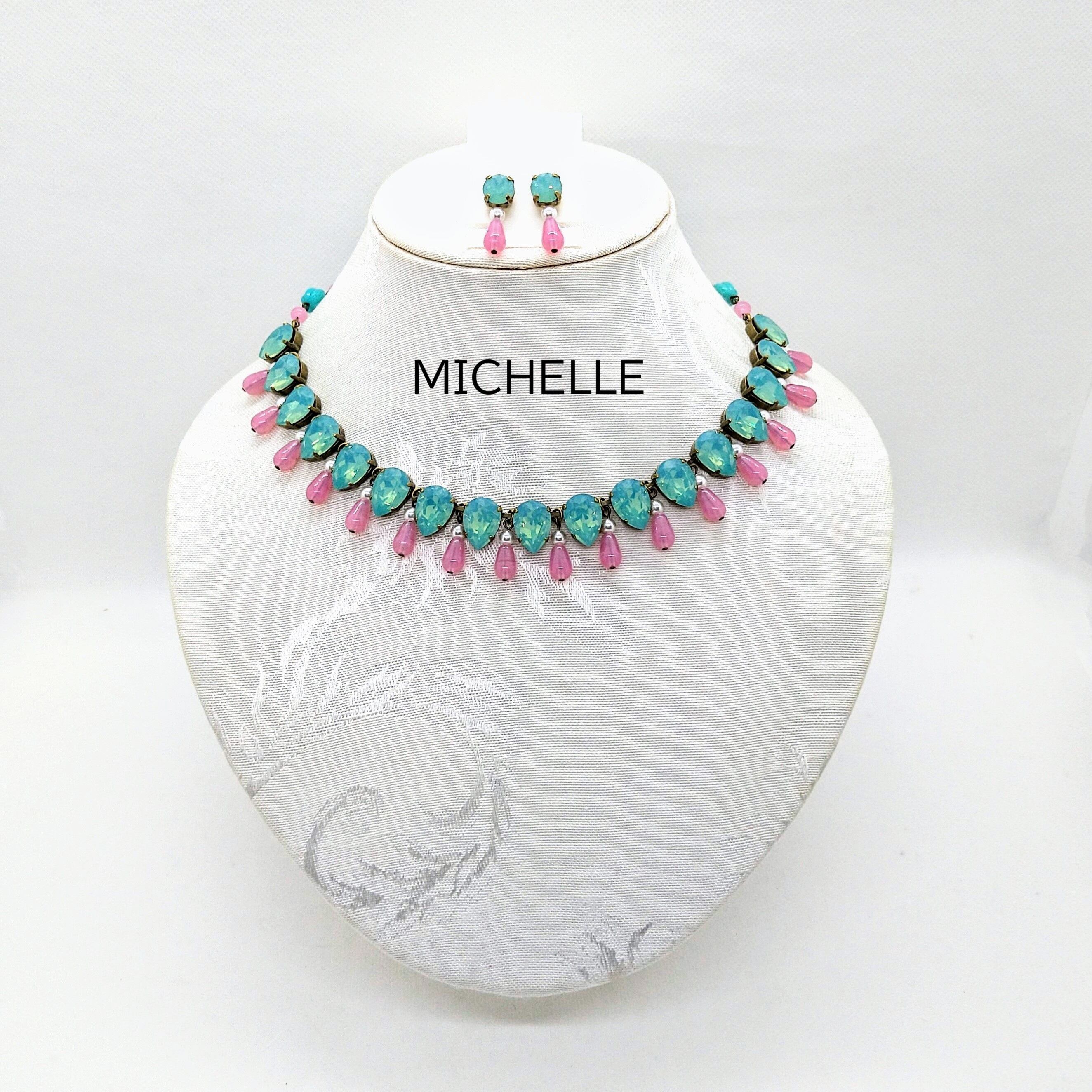 オーストリア製クリスタルのPacific Opalとチェコ製グラスビーズのPink Opalを使用してネックレスを作りました。