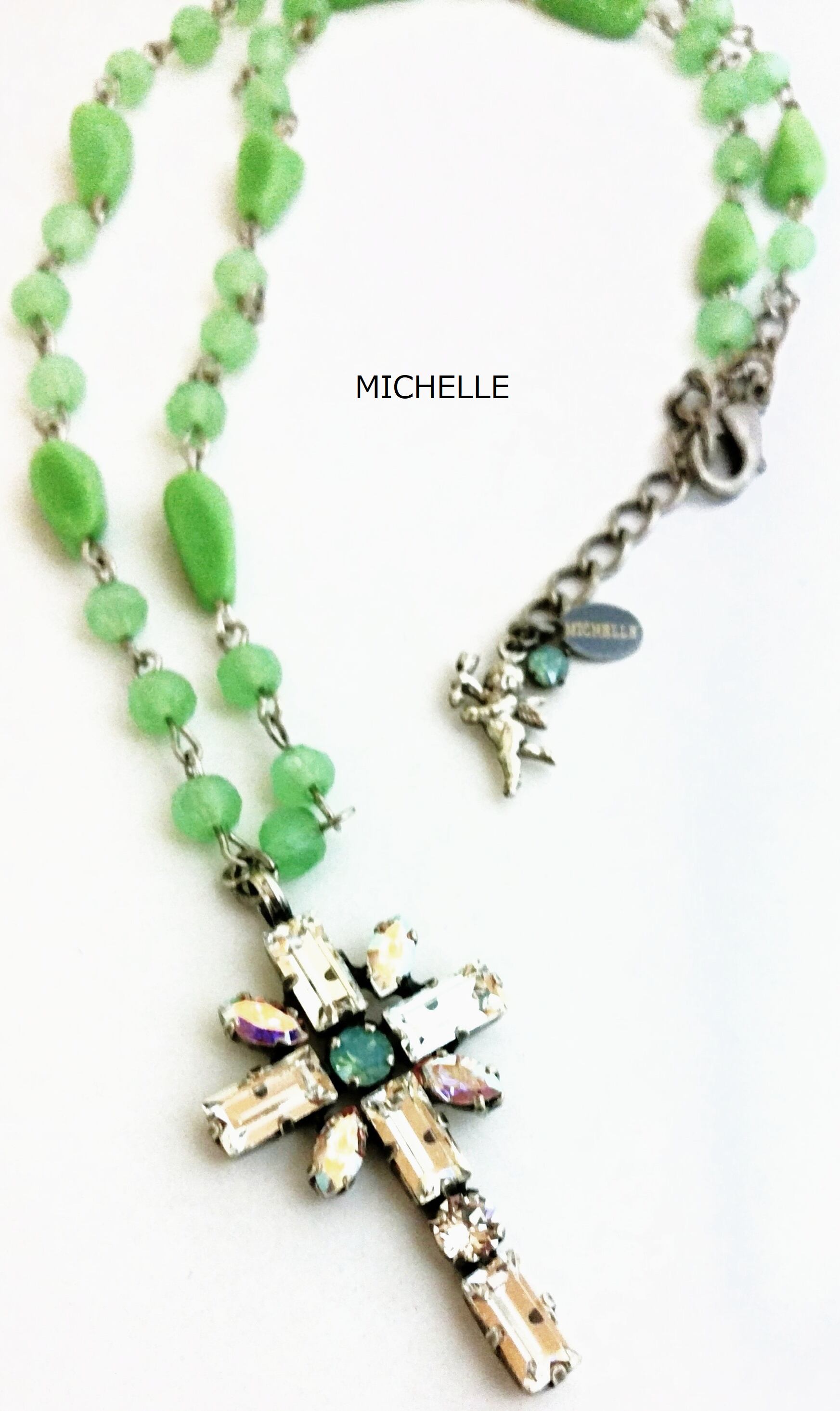 ヨーロッパ製クリスタル & ヴィンテージチェコグラスビーズ使用コスチュームジュエリー クロスネックレス