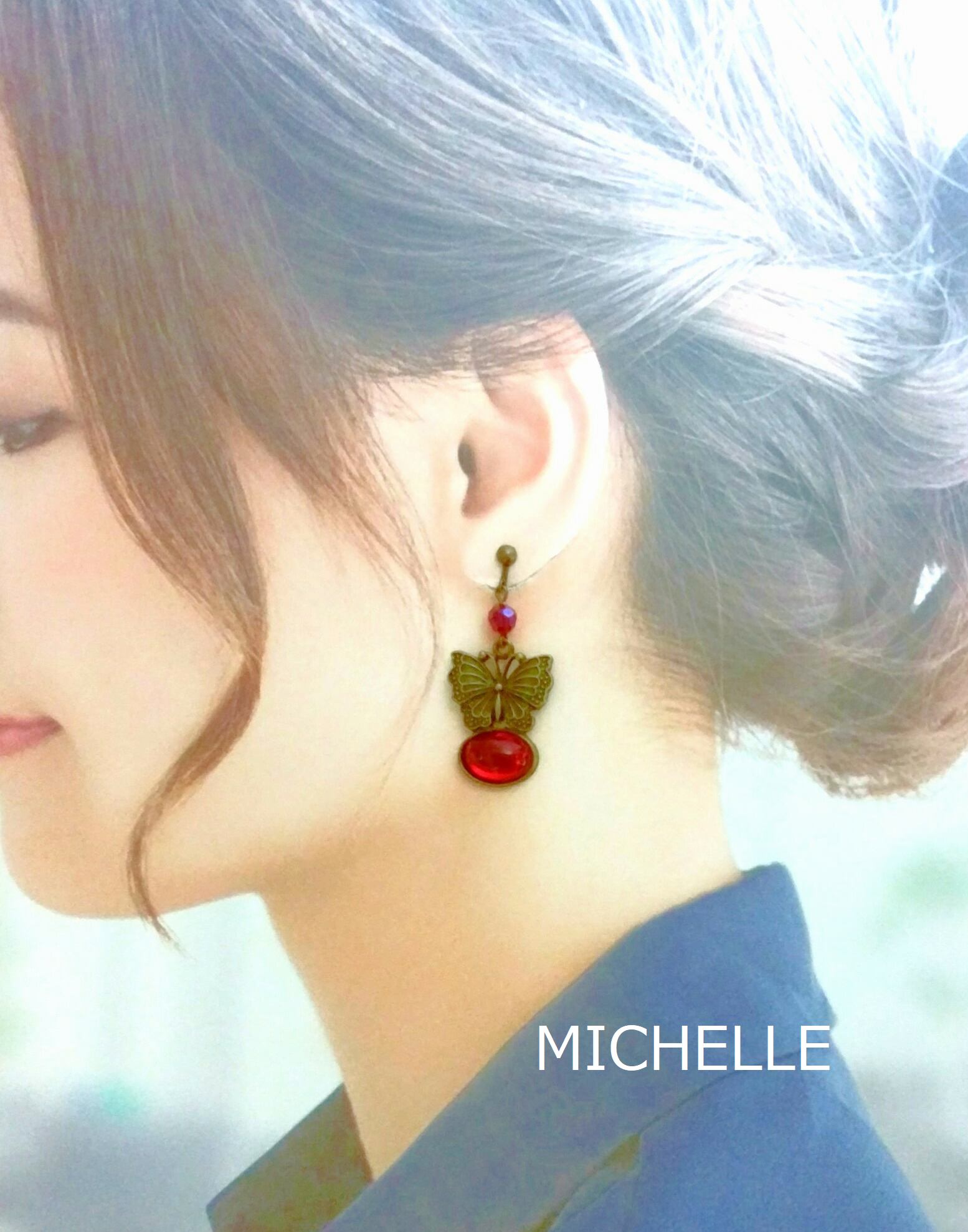 ヴィンテージチェコグラス使用コスチュームジュエリー バタフライイヤリング
