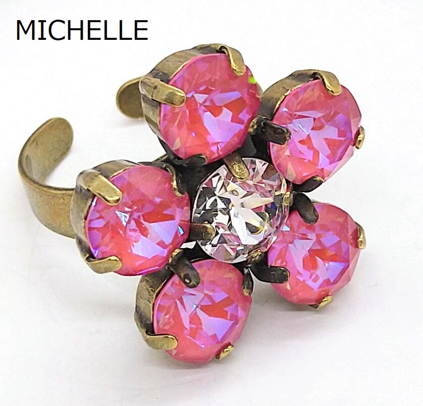 8㎜サイズのスワロフスキー・クリスタルを使用した大ぶりフラワーリング。