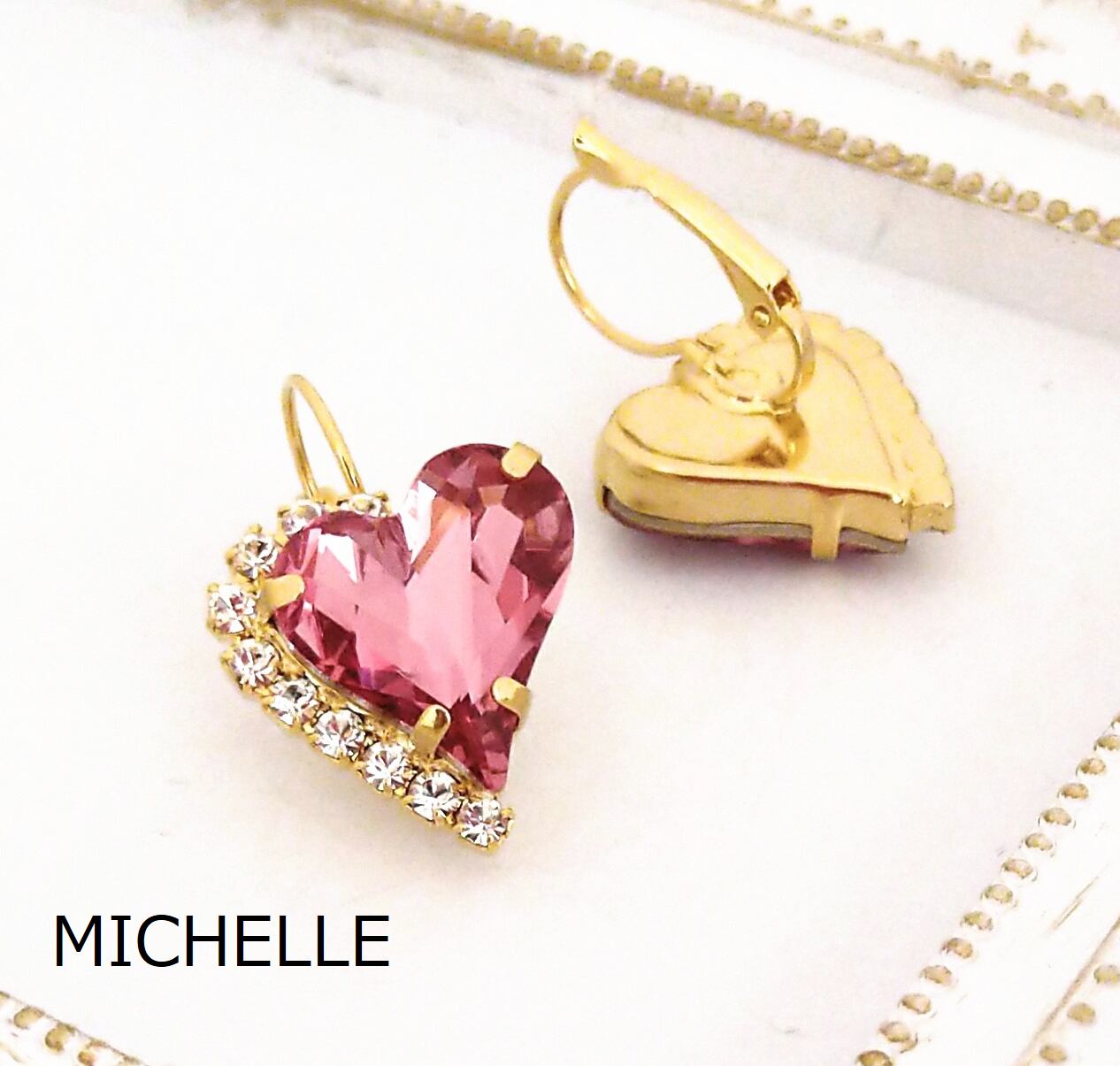 17x15.5mm のアシンメトリーなハート型 " Sweet Heart " という名のスワロフスキー・クリスタルを使用したピアスです。