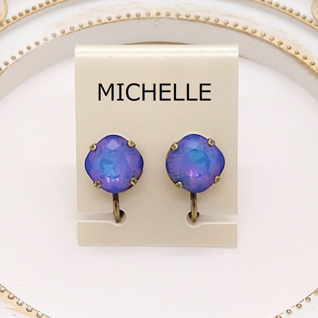 ヨーロッパ製クリスタル使用コスチュームジュエリー White Opal Heliotrope スクエアイヤリング