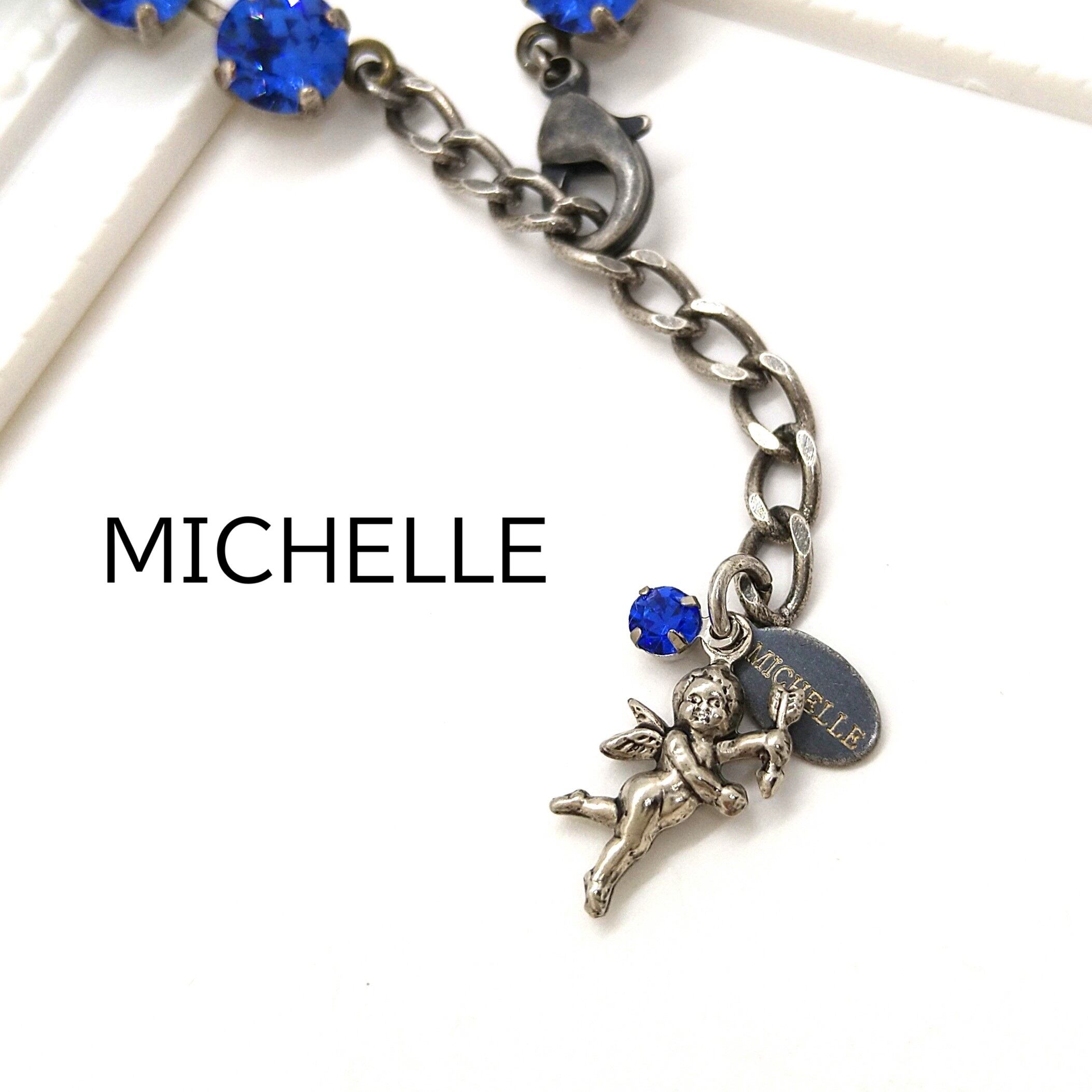 ネックレスチェーンは、オーストリア製のクリスタル SapphireとCrystalを交互に繋げて作りました。